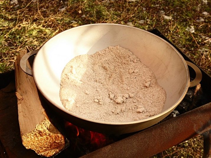 This option is suitable for calcining both in the open air and at home. Most often, this method is resorted to in the conditions of an apartment. For the procedure only coarse ground salt will do - the larger it is, the more useful the procedure will be for the cauldron.