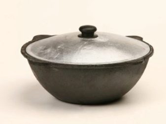 A good cast-iron cauldron has the shape of a hemisphere and allows you to prepare dishes with a multi-layered composition, providing optimal heat treatment for all ingredients. The food in it does not burn, languishes for a long time, gradually being saturated with bright, rich flavors and aromas. The thickness of the walls of a good cauldron made of cast iron should be more than 0.5 cm, for electric and induction stoves it is better to purchase models with a flat bottom.