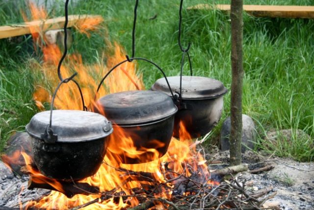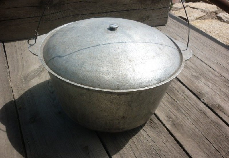 Aluminum based alloys are also very popular in the manufacture of cauldrons. Cast metal containers have thick walls, are durable, weigh less than their cast-iron counterparts. Marching aluminum cauldrons look more like kettles and are most often produced by stamping. For aluminum cauldrons are characterized by higher requirements for the choice of temperature, in the absence of a special coating food can burn.