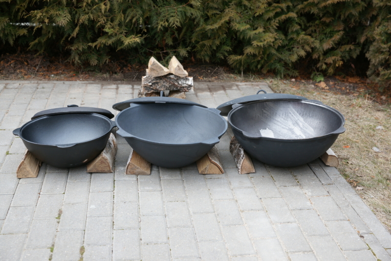 For a country house, a country house, where there is an open hearth, you can purchase models of 18–20 l. They are most convenient for making pilaf for a large company, they are massive, complemented by heavy cast lids.