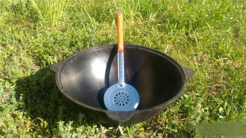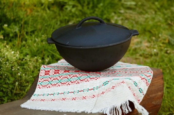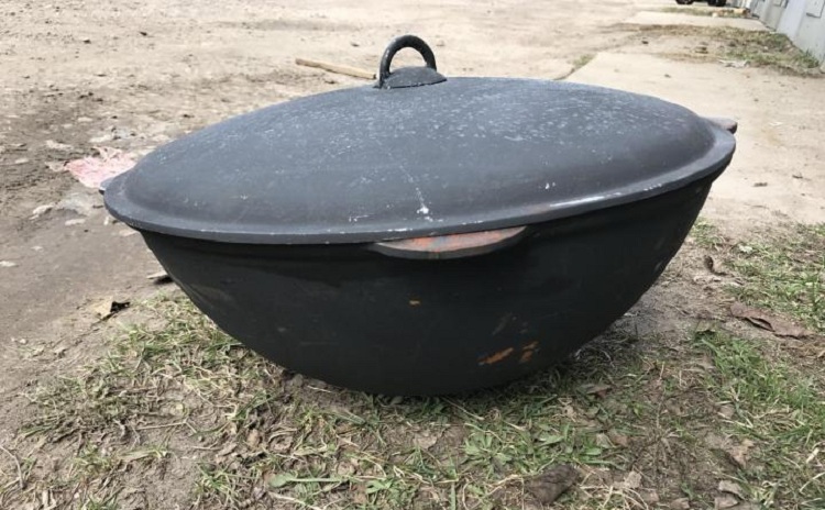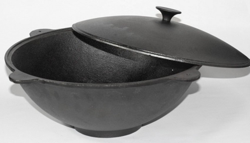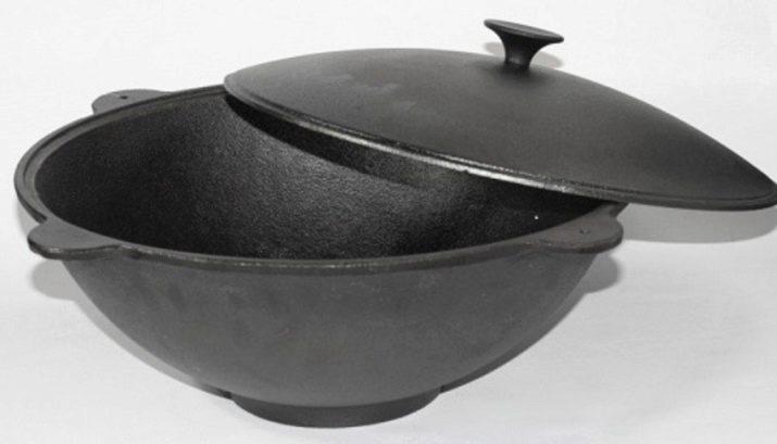 The shape of the cauldron depends on the method of cooking. The classic version used in Asian countries is hemispherical in shape and resembles a giant bowler. It can be used only on coal or wood-burning stoves with special grooves or in combination with a tripod on which the tank is located.