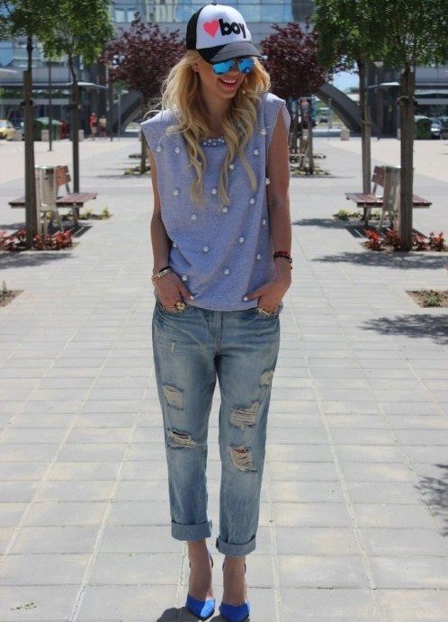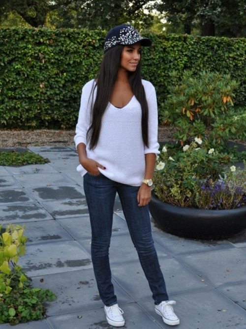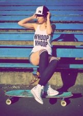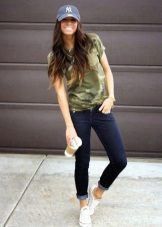 - sport chic. Combine a cap in the "rapper" style with jogger pants, boots, sneakers or sneakers;
