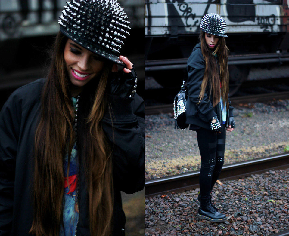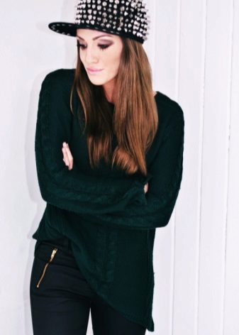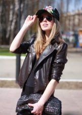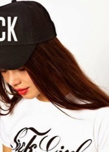 - Straight black cap will help create an informal image that can not be found equal. To such a cap should pick up a jacket with long sleeves in a large grid, it is better that it was such a kind of sweatshirt. Jeans of dark blue or black color, stylish sneakers on the platform, as well as accessories in the form of large chains on the neck and arm will also suit.