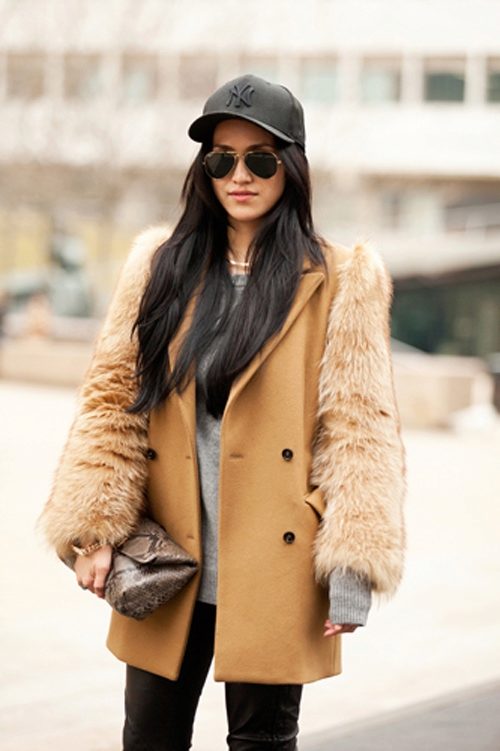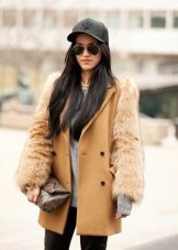 More informal caps go well with jackets, down jackets and even fur coats.For caps in a classic business style, it is better to pick a strict coat or thin sheepskin coat with a predominance of straight lines and simplicity in silhouette.