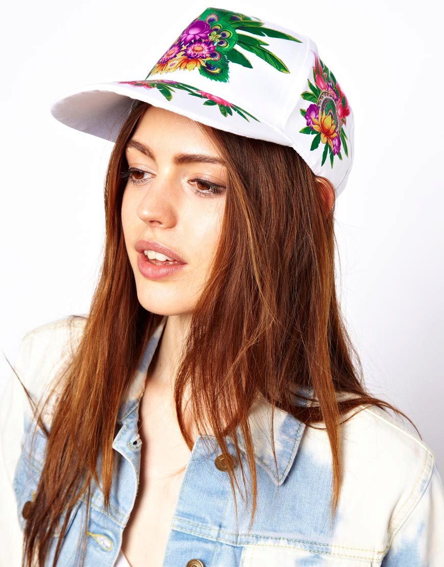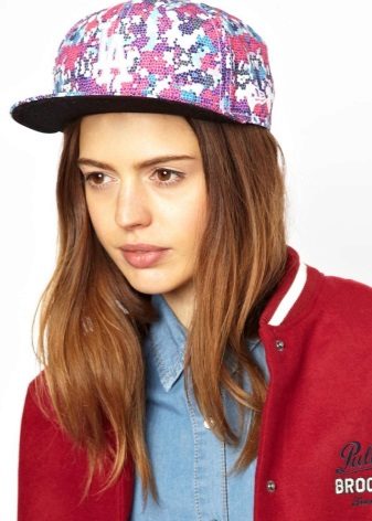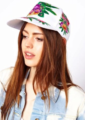 Among the bright, perky girls, a cap with a floral print, or, to be more precise - with the image of several roses, gained wild popularity. Thanks to such a decorative element, a simple and even sporting product takes on a more feminine look.