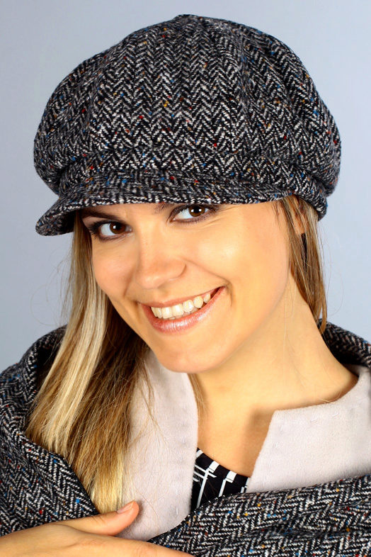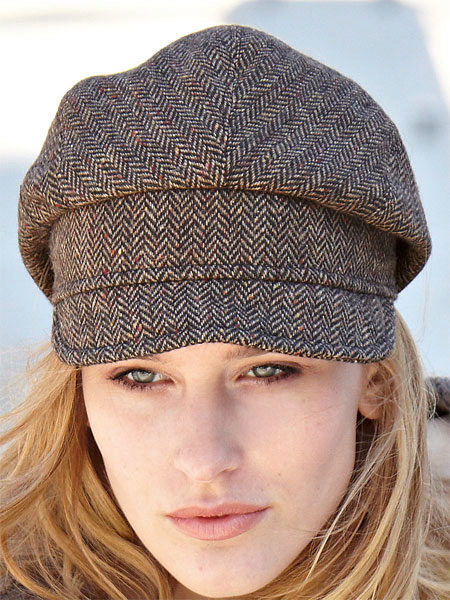 Tweed material It has a dense structure with a rather stiff pile, which makes the product very warm and suitable for autumn or spring chill. In addition, tweed caps look very beautiful, in the best traditions of the English style.