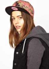 In trend rapper caps with a print.Designers offer floral patterns, space themes, images of the American flag, animalistic motifs (leopard print), camouflage pattern, cage, peas.