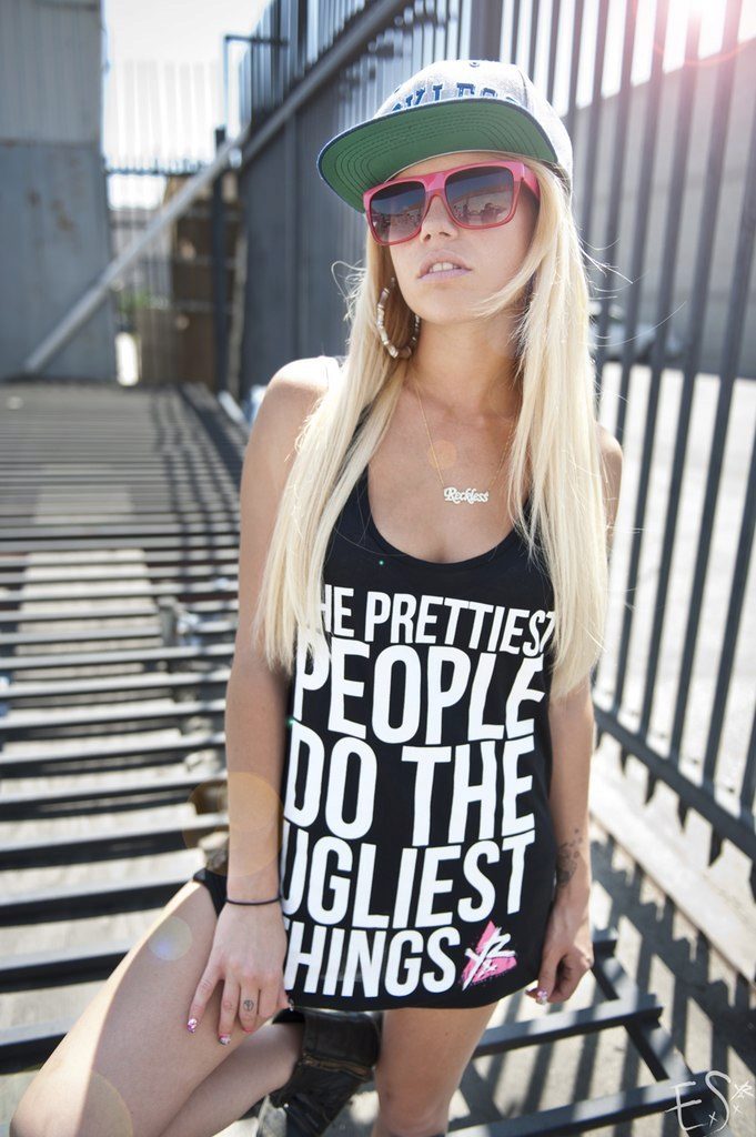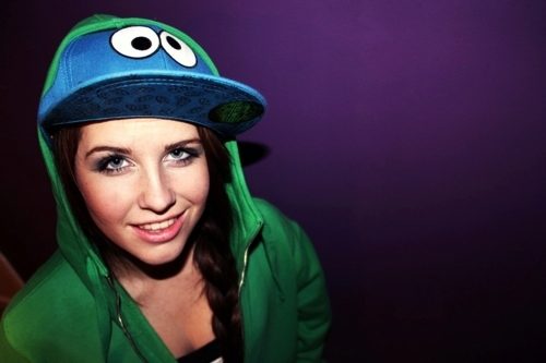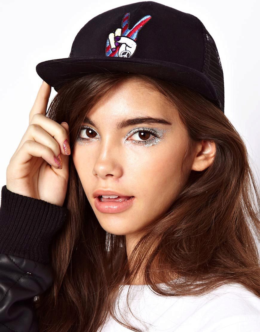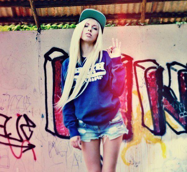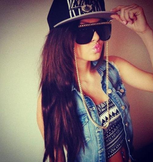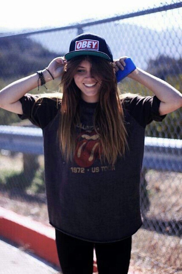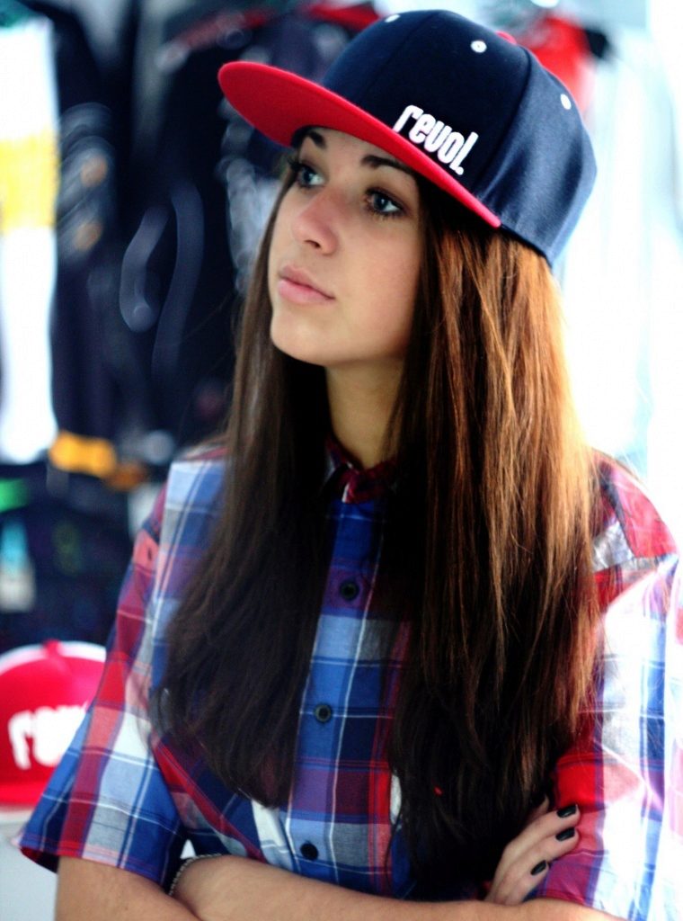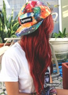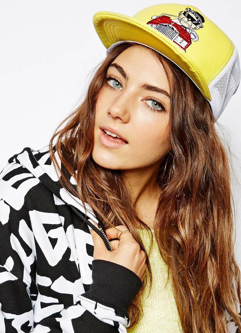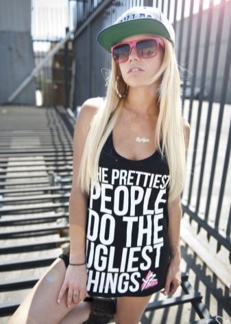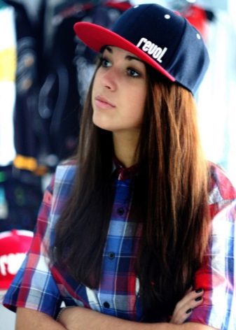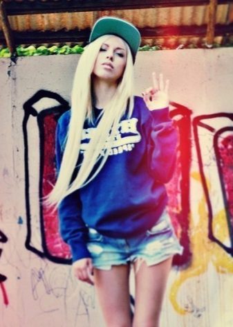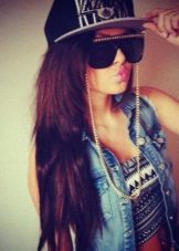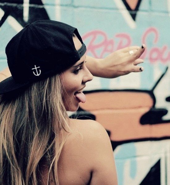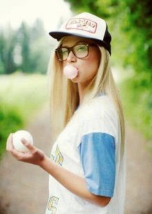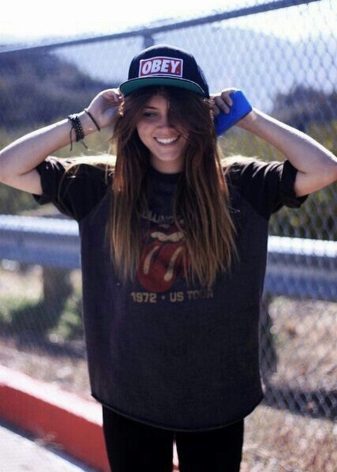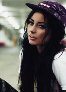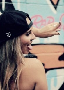 The cap can be worn in another way, it will emphasize the girl’s confidence in herself, adherence to hip-hop culture. The visor shifted to the side gives the image a slight negligence and emancipation. Even more challenging is the cap, put on the visor back. For the ardent rappers, the style of wearing a cap on a bandanna is suitable.