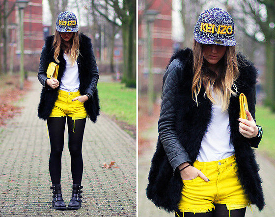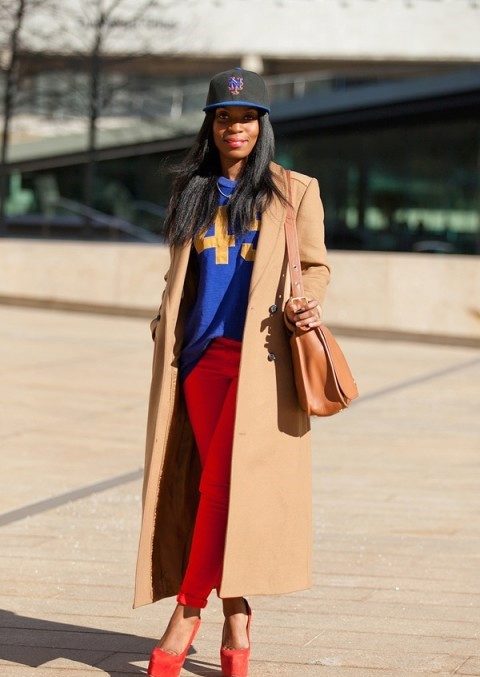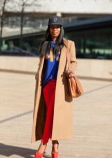 In the cooler seasons, the cap can be worn in combination with a park or a coat with a straight cut. Such an ensemble will look especially well paired with tight pants and shoes on the platform or low speed - ankle boots on a wide low heel, sneakers or sneakers. A laconic canvas or leather backpack perfectly complements the urban look.