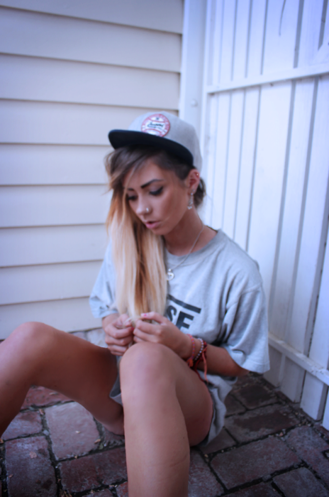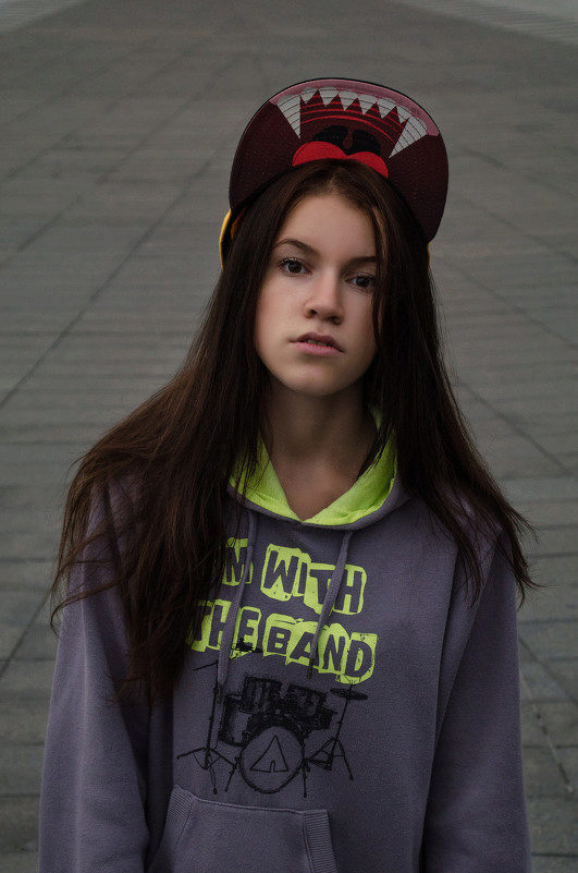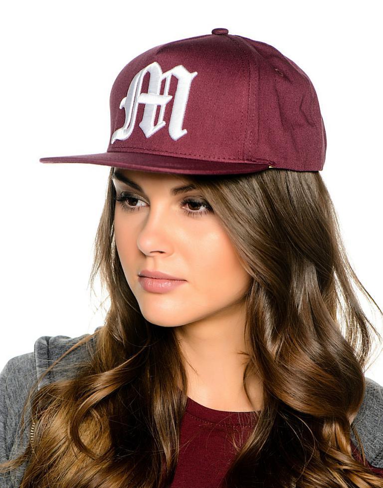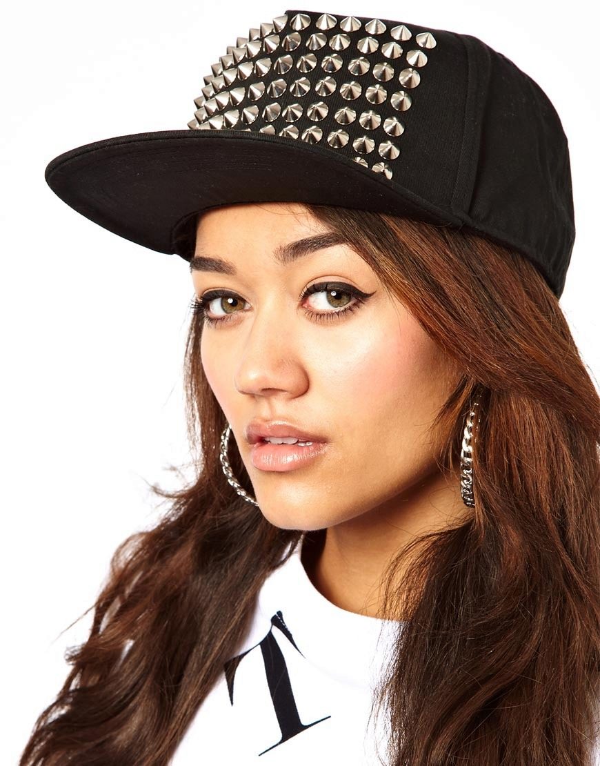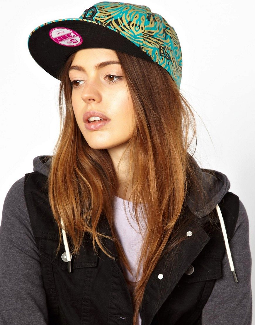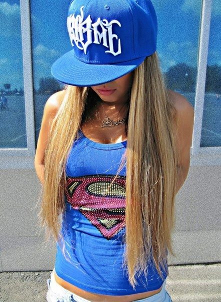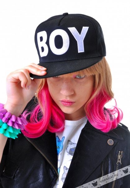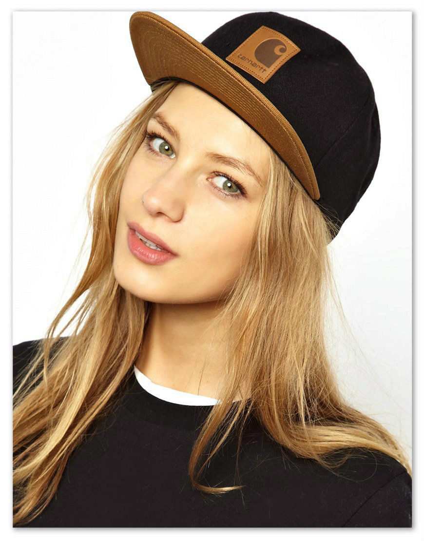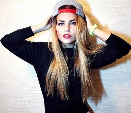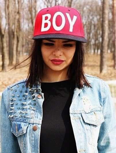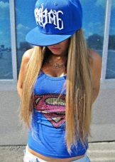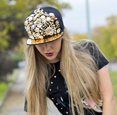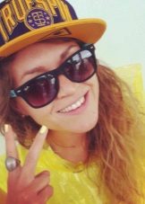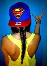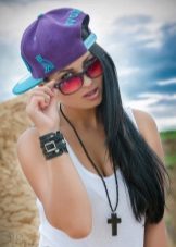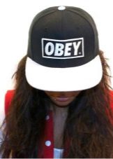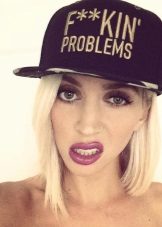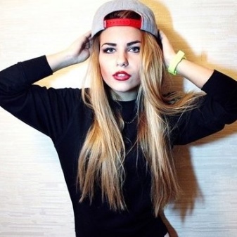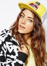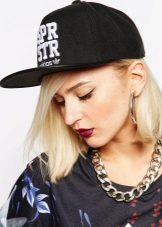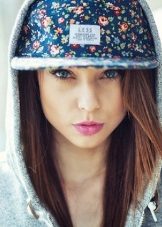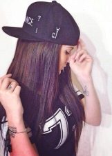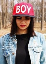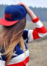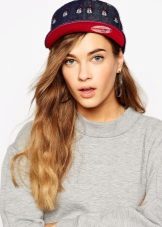Playfully and cocky looks cap, turned backwards. Snnebek can be worn on your own or put it on a bandana or kerchief. The visor can be adjusted by slightly raising or lowering its edges. It is very important to choose the right cap for the size and adjust the buckle., because too small a cap can bring discomfort in the form of a headache and spoil the hairstyle, and too much a risk to worsen the whole image.