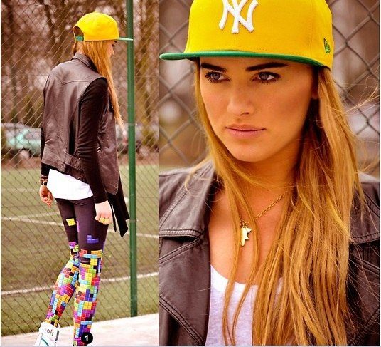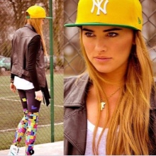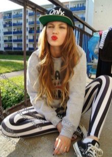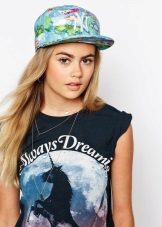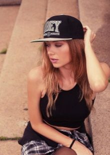 It is possible to combine caps with a direct peak both with sportswear, and with daily options in style casual. In the summer, snepbek will look great with shorts and free T-shirts or short tops. Short flared skirts complete with such a headdress look especially stylish and flirty.