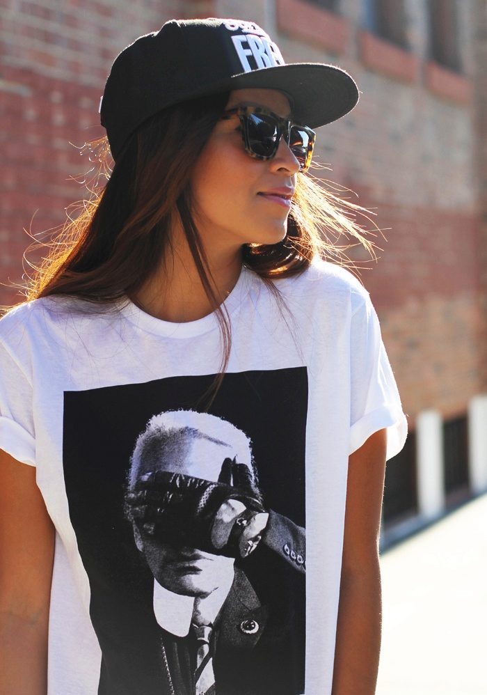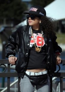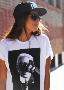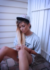 Besides the fact that the cap is a stylish accessory, it will also help protect your hair from burning out., head from sunstroke, and eyes from the sun. Large sunglasses add sharpness alongside. In the evening, a T-shirt can be replaced with a sweatshirt or a classic shirt, complementing a bomber jacket made of thick or transparent fabric. Perfectly with a snapback look straight dresses from denim or tight models of knitwear.