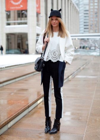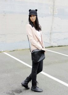 As for shoes, there is also a great choice. If you think that wearing a cap with ears is possible only with sneakers or high boots, then you are mistaken. Both winter boots and fall shoes are perfect here.