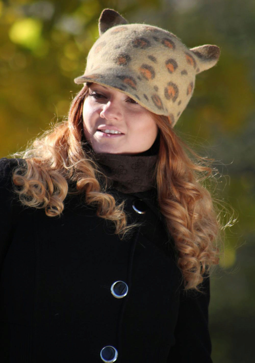 - Warm and comfortable. First of all, the cap with the ears acts as a decorative piece of clothing. However, it is also a headdress that successfully protects against wind and cold. Fur caps are useful in winter, and felt or knitted - in spring and autumn. And besides that the cap with the ears is warm, it is also unusually cozy and comfortable.