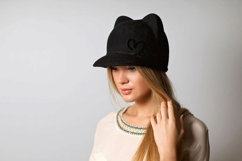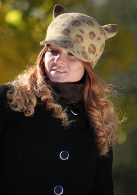 Products from this material are especially in demand in the autumn. Felt hat with ears is a fashionable and stylish option.