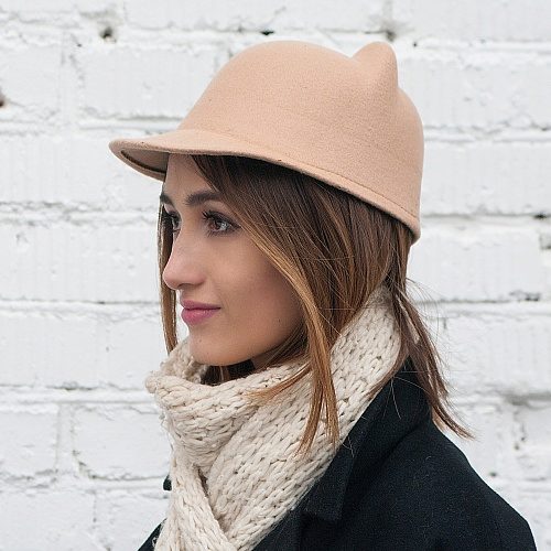 - Originality. Undoubtedly, in such a cap you will find yourself in the spotlight. Therefore, deciding to wear this headgear, you must be prepared for numerous views. Cap with ears - a great option for brave and confident women.