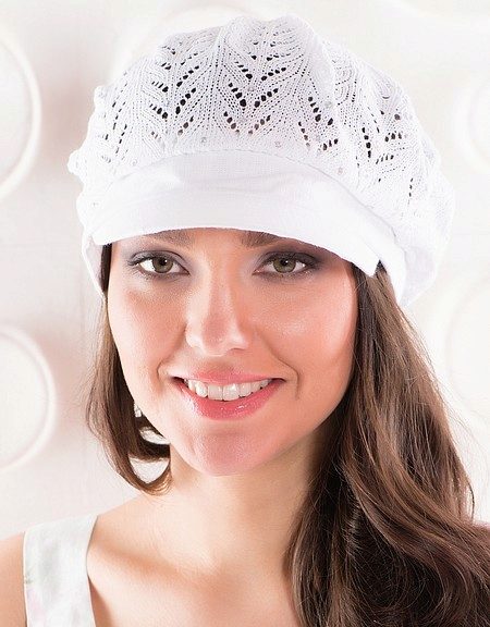 Stylish summer cap, it is desirable to purchase from cotton, flax, viscose or microfiber. Options for little girls for hot days are better to choose from natural cotton (if you knit a cap yourself, buy thin cotton "iris", "lily", "violet", etc.) and linen threads.