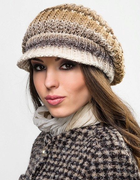 As for the latest fashion trends, then in the season of 2017 popular knitted caps with a beveled visor. In addition, this thing must be able to wear. A cap of fine yarn can be deliberately casually tilted to one side or moved to the back of the head. If you have a winter knitted model of strict style, then it is worn strictly and neatly.