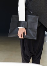 The popularity of small handbags makes designers create more and more new models and improve their design. Manufacturers have noted the growing popularity of XL size, in which you can put not only lip gloss, but also a tablet. Such clutches are made of soft leather to visually reduce the product.
