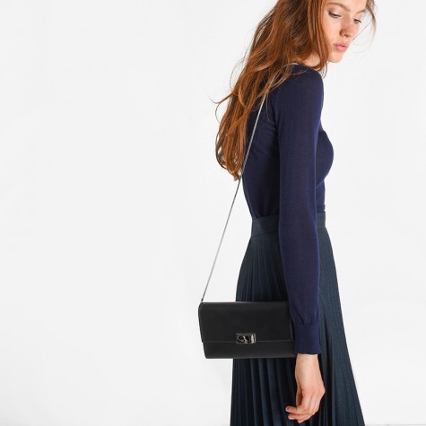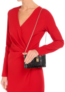 - Clutch on a chain. One of the most famous models. It has a long strap, making it very convenient to use the handbag. The choice of such clutches is diverse, you can find models with incredibly bright prints. Also, the strap can be beautifully wound on the hand, it will make your bow more interesting.