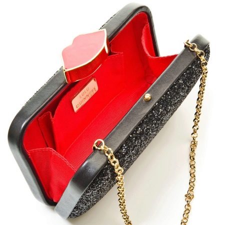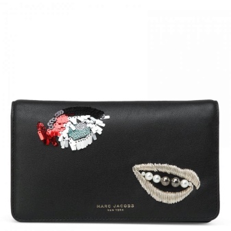 Also there are models with the image of various girly things: lipstick, perfume, lips. These models are not suitable for everyday looks, but are ideal for evening wear. For example, a stylish clutch from Mark Jacobs brand with an image of eyes and lips, made with the help of beads of bright colors and neat beads.