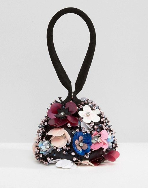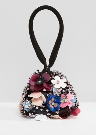 - Handbag in the form of a small bag with a small handle. These clutches are decorated with fringe, stones and sequins. The clutch embroidered with flowers looks unusual. It can be used both for everyday and for creating a bright evening look.