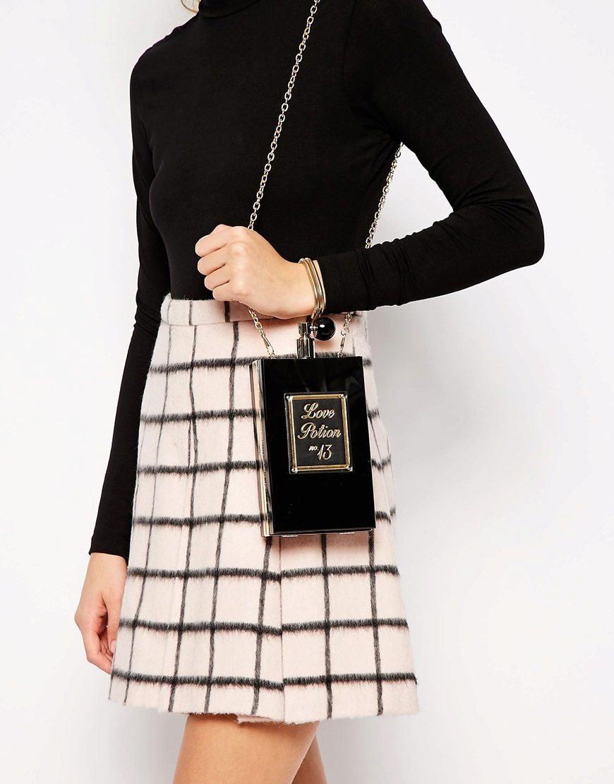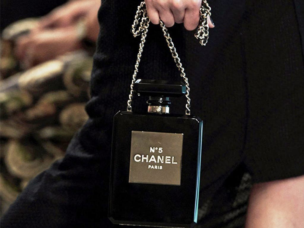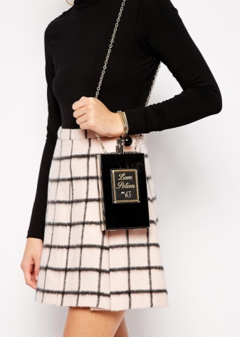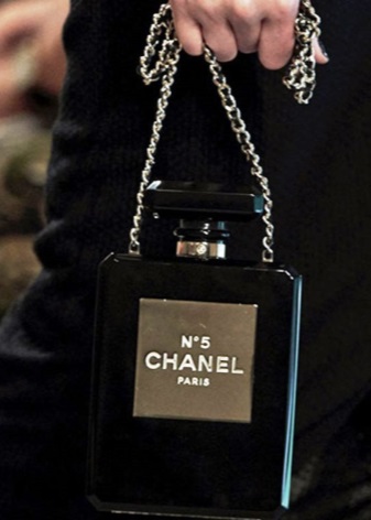 - Clutch in the form of a bottle. Such a clutch looks exactly like a bottle of perfume. The most popular models: Lanvin and Chanel.