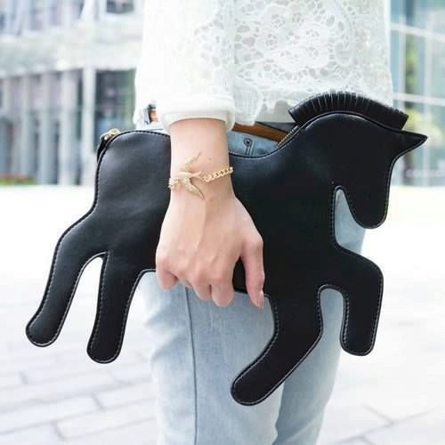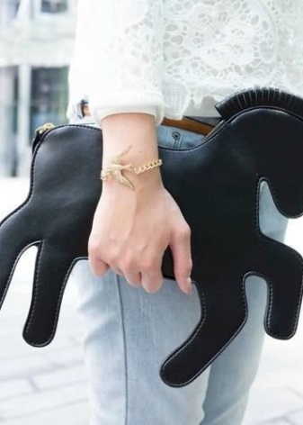 - Clutch in the form of animals. You can find a lot of handbags in the shape of different animals. One of the most common models is a handbag in the shape of a horse and owl.