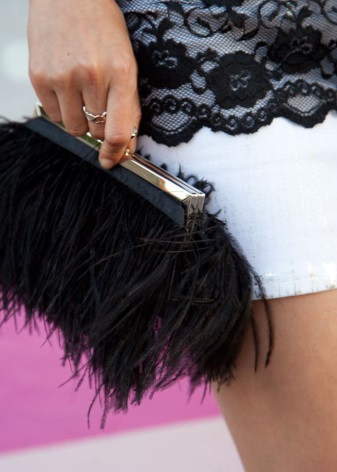 Another option for special occasions - handbags with feathers. They look very elegant and stylish. Especially well with skirts made entirely of feathers, or dresses, the belt or hem of which is decorated with feathers.