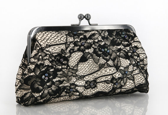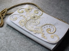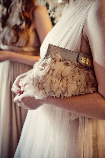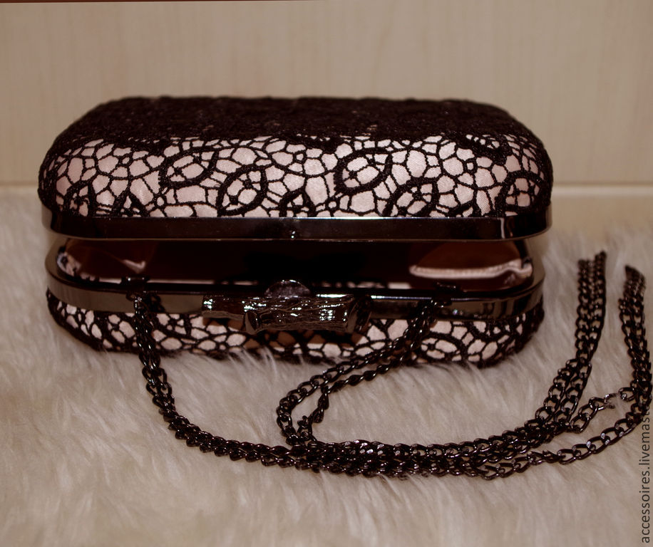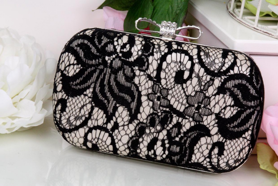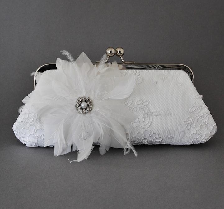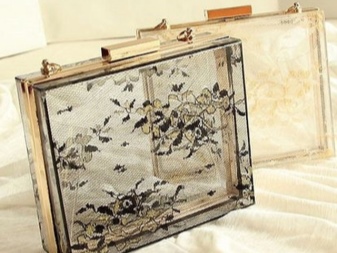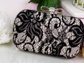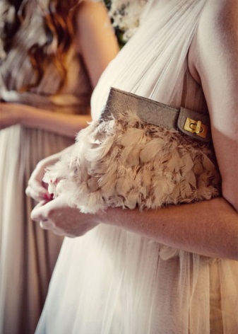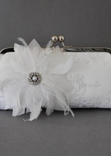 A clutch of lace fits exclusively to the wedding dress. Its color must be in harmony with the shade of the dress. Remember that it is he who will captivate the attention of the guests, so you need to choose it as carefully as possible. If the wedding dress is decorated with any decorative elements, then on the clutch should be appropriate decorations.