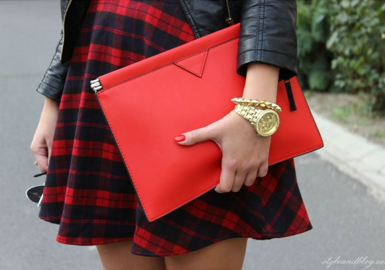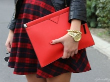 Bright leather transformer clutch perfectly fit into the office style. If you decide to take a red clutch with you, it is better to make up your lips with red lipstick, but it is better to leave the nail color natural.
