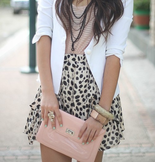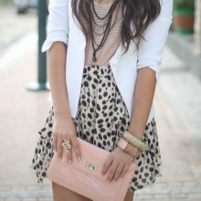 It is better to combine clutches with pictures with monophonic clothes or with certain elements in clothes, even with a different print. A good option would be if, for example, a leopard clutch is combined with leopard inserts on clothes. A skull clutch is perfect for the same kind of accessories (earrings, bracelet, ring or chain with a skull). But the print with roses is not combined with accessories. With him you need to choose either a ring with a rose or a clutch with it.