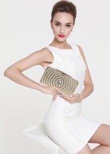 The clutch with rhinestones, with sequins and stones is best suited for such a dress, where there will be at least a small, but an element of such a decorative material.