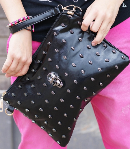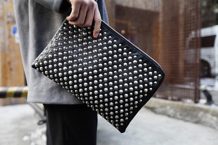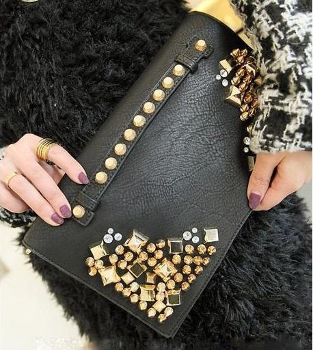 A spiked clutch and a rivet will be appropriate only with the same shoes or outerwear of the same design. Otherwise it is better not to wear, your image will look vulgar.