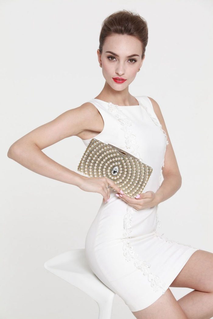 It should be remembered that the harder the cut is, the simpler the clutch should be. With a very complex dress cut choose the most simple handbag. This rule applies to all evening dresses without exception.