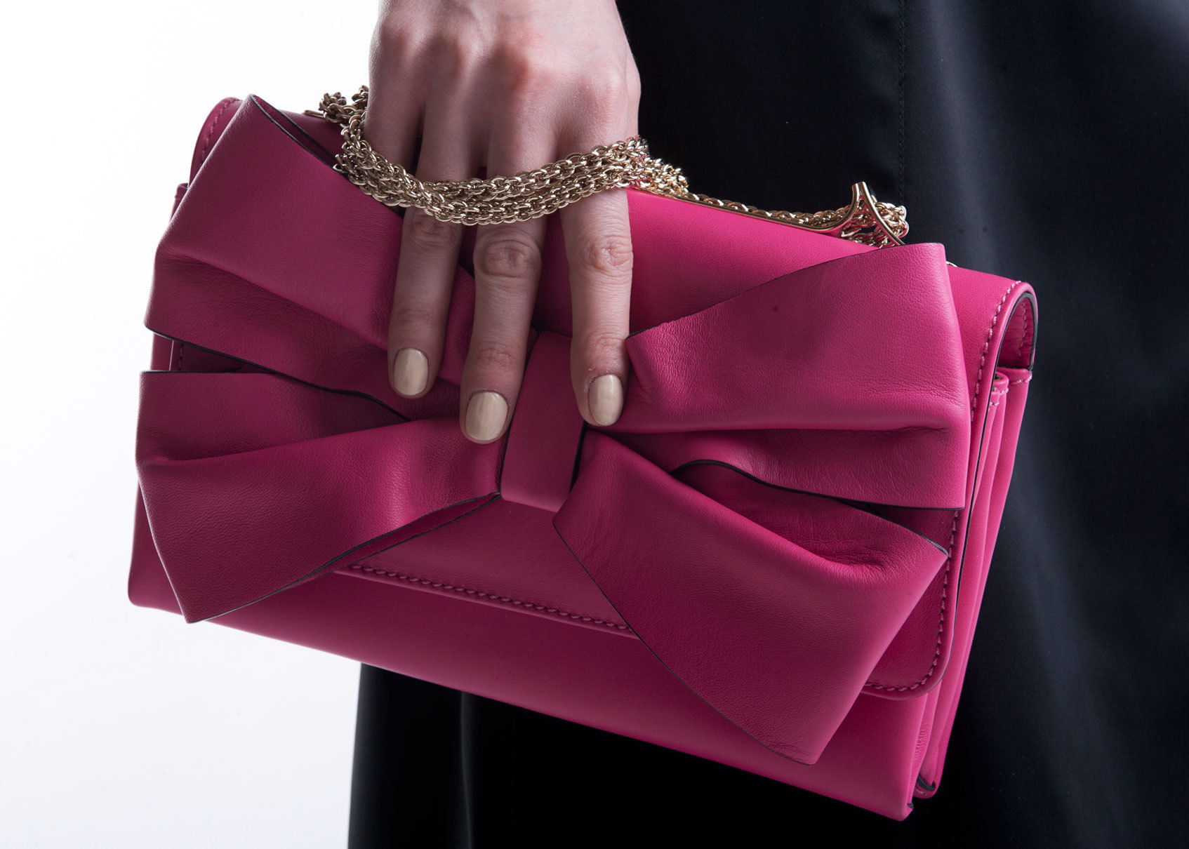 The Valentino brand has a noticeable design: most clutches have characteristic rivets or quilted bright material.