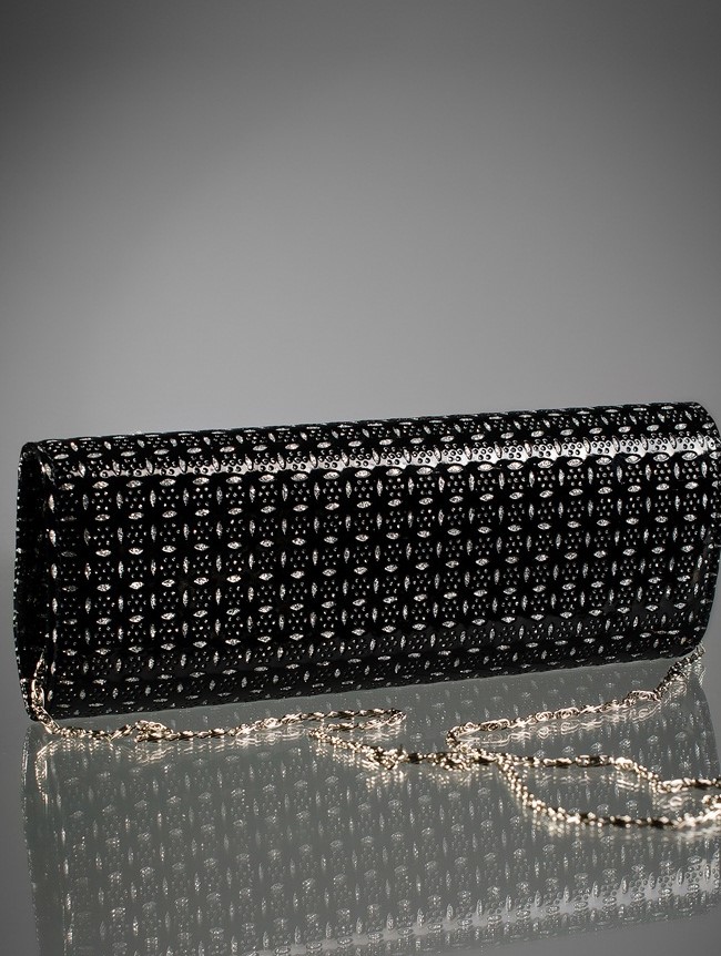 For evening wear, choose a small clutch with a rigid frame. It can be either with or without a chain. An obligatory element of such a handbag is a small, barely noticeable clasp.