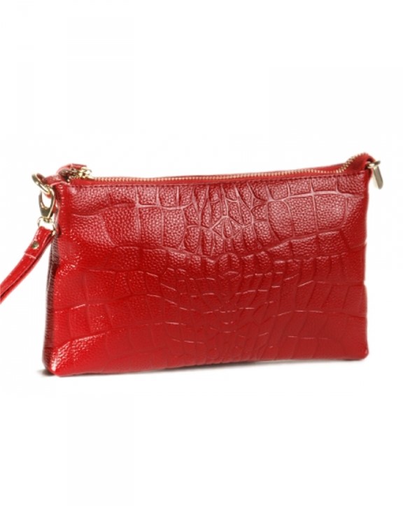 Leather is universal for a clutch. As a material, it fits absolutely under any clothes: both day and evening. It remains only to choose the desired color and size. Leather clutch can be made from python, crocodile and even stingray skin. These are, as a rule, materials of elite clutches.