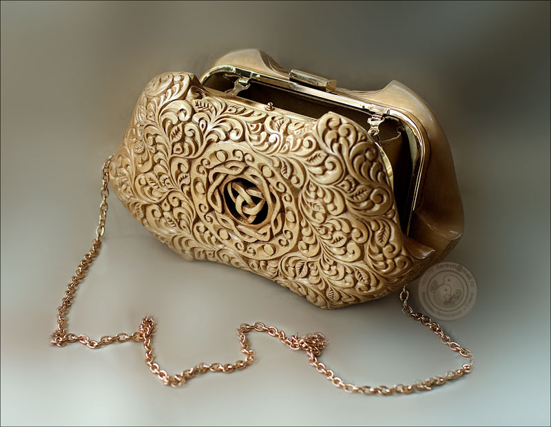 Wooden clutch has a rectangular shape and a rigid frame. It is for those for whom the naturalness of the material is important. It can be used for everyday wear, but you should not forget that such a clutch is not the most practical. Best of all, such a handbag will look with denim.