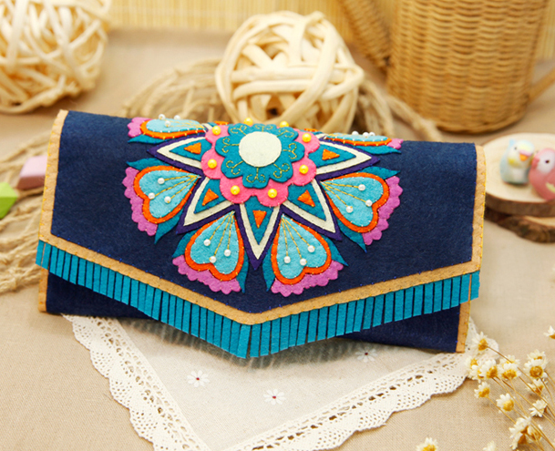A clutch bag of felt or a felted clutch bag can be sewn independently: there are many lessons about creating this type of clutch bag. They are suitable more for the summer season and for summer clothes. These materials are durable, so you can be sure that such clutches will remain with you for a long time.