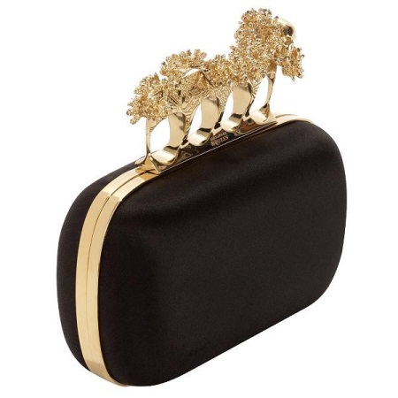 The brightest and most unusual clutches can be found on the shelves of the English brand Alexander McQueen. It seems that the handbag of this designer is not combined with any clothing. Just the opposite. Such bags can be worn with a business suit. By the way, the clutch handle in the form of four rings is the idea of this particular brand.