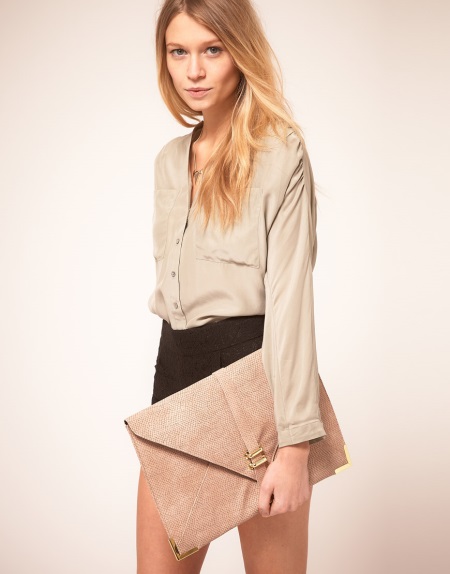 A suede clutch will look great with leather clothing. It is advisable to pick up such a handbag in color to the shoes of suede. Care of him is not as complicated as it seems: it is enough to buy a special brush.