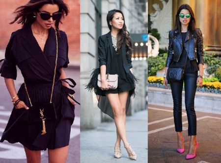 A bright clutch will dilute the solid color of clothes. Classic - velvet or lacquer handbag, along with black or gray clothing. This image will be appropriate only for evening dress.