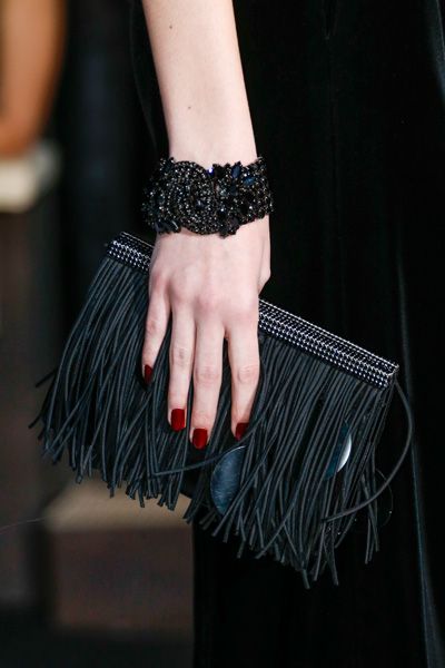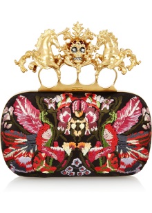 Alexander McQueen clutches are most often associated with the “brass knuckles” model. But the brand has many other original models, decorated with rhinestones, beads, metal elements. The materials with which clutches are covered are natural and of very high quality - suede, leather, silk, satin. In the collections there are also models on a long strap-chain.