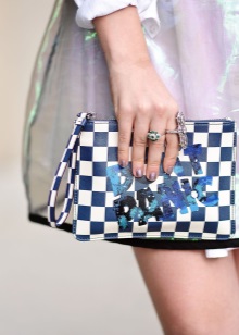 The clutch does not have a universal model. Choose a bag for the place and the image as a whole. Monochrome models - leave for daily use. But bright handbags, with a motley and rich finish, boldly take with you for the holidays.