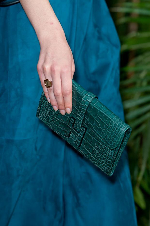 It is better if the decor is on a clutch bag and the dress will be close, if not in execution, then at least in style. The whole image should keep one style, so that the clutch does not seem like a foreign element.