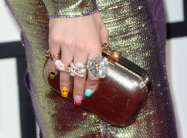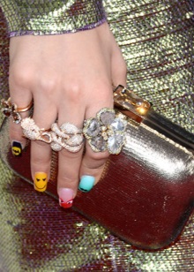 - Perfect manicure should overlap with the clutch on the color scheme.If you do not want to be monotonous and boring, then try the classic French manicure, with clutch color elements.
