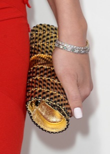 If your evening dress is bright and contains a lot of inserts with rhinestones, sequins, fringe, then you need to find a clutch that is calm and tones of classical. This rule also applies to bright colors - fuchsia, lemon, acid green, violet and similar colors.
