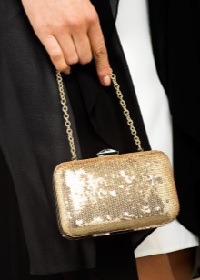 - The clutch should match one of the colors of the clothes or be in harmony with the shoes, but it is also possible to play on the contrast. The main thing is a sense of proportion.