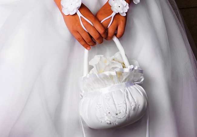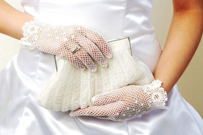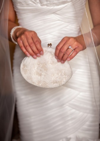 - wedding romantic image. The clutch should match the dress not only in color, but also in finishing - lace, ruches;